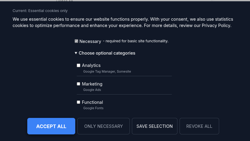 - Configuration is your responsibility. The site owner is responsible for correctly configuring consent categories, block patterns, banner text, and privacy policy references to reflect the actual data processing activities on their site.