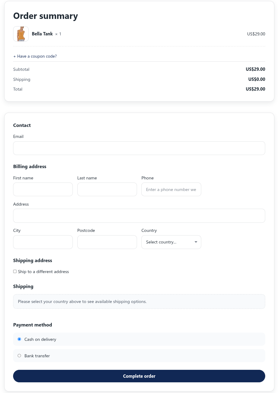 For more complex cross‑border compliance (EU/UK VAT edge cases, B2B reverse‑charge, US state/district tax, or multi‑currency display), those capabilities are intentionally out of scope for the free version and planned as advanced upgrades. This keeps setup simple and reliable for merchants who primarily sell in one country or to a limited set of destinations.