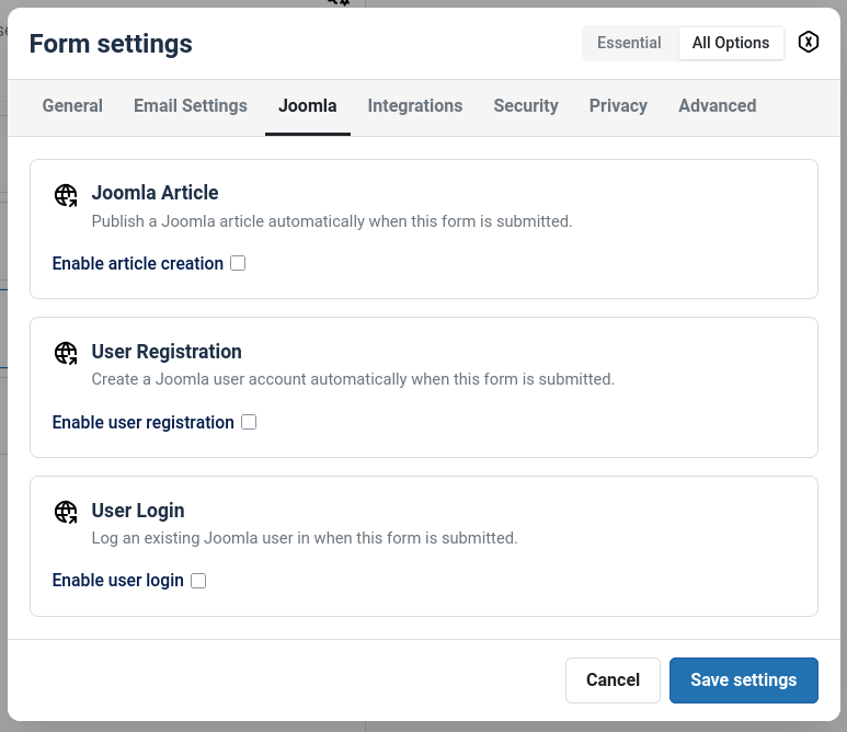 The package comes with a main component, one content plugin, one webservices plugin and a module for easy form embedding in module positions.